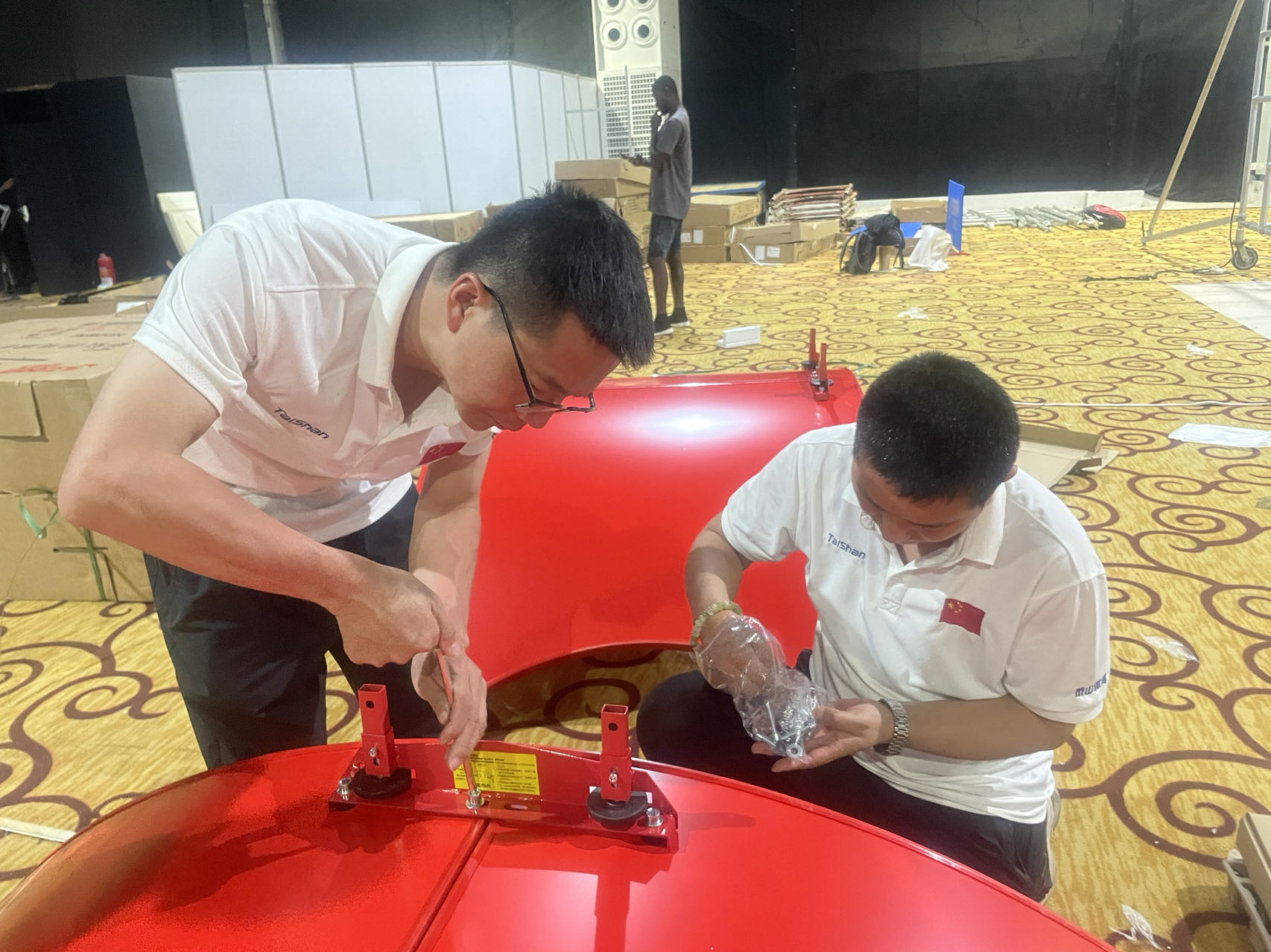作为全球体育健康一站式解决方案服务商,pt古怪猴子体育服务保障团队是一支不可或缺的重要力量,赛事服务保障团队既包括产品设计、研发技术人员,也包括制造、生产、集成、服务人员,对每一款产品的研发、生产、性能都了如指掌,形成了从产品研发到下线的全流程闭环跟踪服务模式。目前,非运会pt古怪猴子体育器材正在紧张有序的安装中,服务保障团队发扬一丝不苟、精益求精、注重细节、环环相扣的敬业精神,在器材组装、调试工作中,不放过那怕一颗螺丝和微小部件,保障每一件器材的使用性能都达到最优状态。
