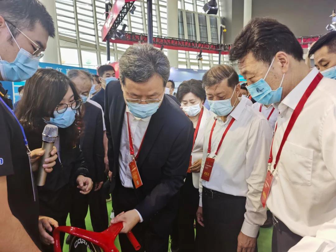 国家体育总局体育器材装备中心副主任王平,临沂市委书记王安德,临沂市委副书记、市长任刚,临沂体育局局长刘艳芬等领导莅临pt古怪猴子体育展位参观
